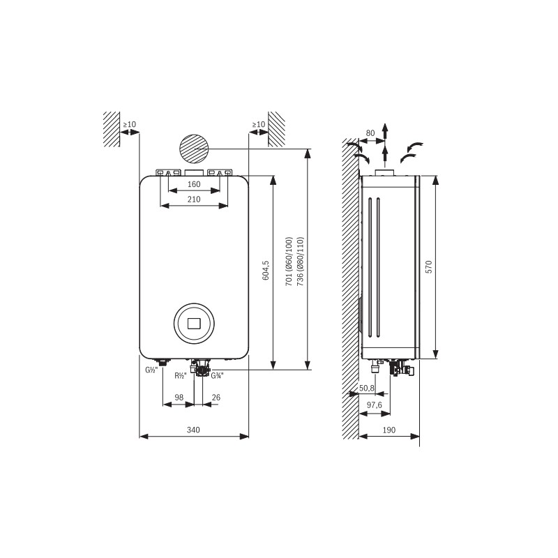 | Diámetro del tubo de evacuación | ø mm | 60/100 80/110 80/80 |
