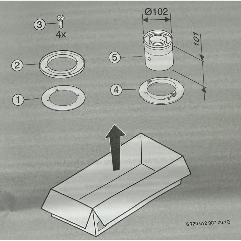 Adaptador de conexión con salida vertical 60/100 mm de JUNKERS. Este accesorio original Junkers permite la evacuación vertical de humos para calderas de condensación. Diseñado para sistemas coaxiales de 60/100 mm, garantiza una estanqueidad total y una instalación segura. Su peso peso es de 0,7 kg.