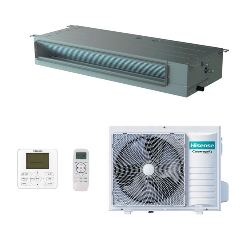 Aire acondicionado Cassette ACT35UR4RSCC8 + AUW35U4RS8 de HISENSE: Pack de unidad interior y exterior. Interior con 3500W en frío (A++) y hasta 4000W en calor. SEER 7 y SCOP hasta 5,35. Incluye bomba de drenaje, filtro estándar y mando remoto. Exterior con compresor rotativo GMCC, gas R32 (0,87 kg) y tecnología EEV. Soporta temperaturas extremas de -20°C a 52°C. Eficiencia y potencia profesional.