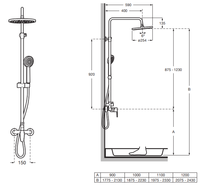 Columna de ducha monomando con altura regulable M-Plus - ROCA