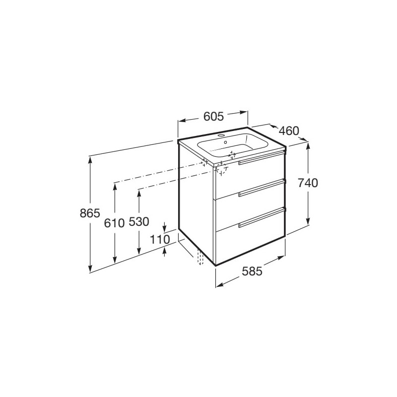 El mueble + lavabo de la colección VICTORIA-N FAMILY de ROCA es de color wengué y cuenta con 3 cajones amplios con cierre amortiguado. Disponible en diferentes medidas. El lavabo de porcelana de primera calidad de ROCA, incluye repisa integrada a ambos lados, con agujero para grifería en el centro. El mueble + lavabo se puede instalar de manera suspendida o con patas (opcionales).