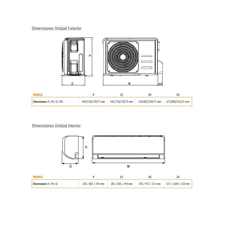| Clasificación energética calor clima cálido/medio (escala de D a A+++) | A+++ / A |