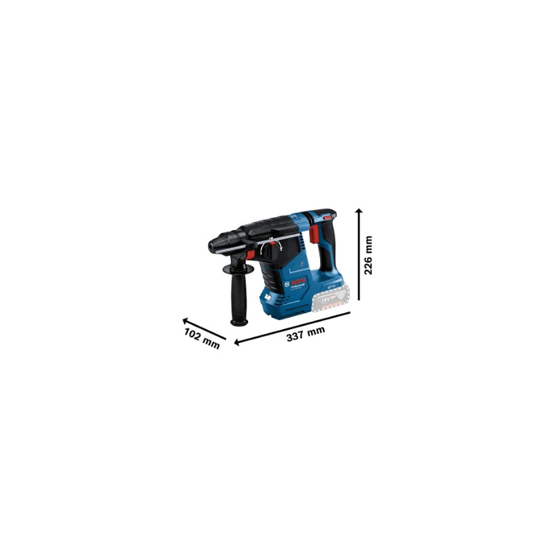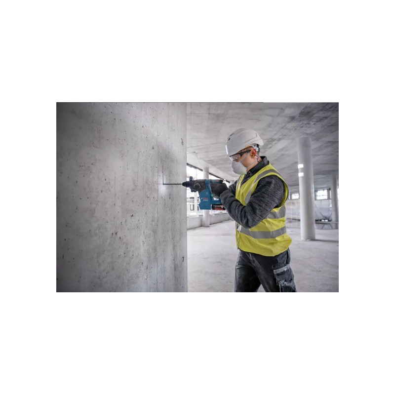 El Martillo Perforador a batería GBH 18V-24 C L-BOXX 136 es un campeón en eficiencia diseñado para perforar orificios rápido con una sola carga de batería. Este martillo de la gama profesional Bosch ofrece un alto rendimiento gracias a su motor Brushless sin escobillas y un mecanismo optimizado, logrando una energía de impacto de 2,4 J y hasta 4.350 pm.