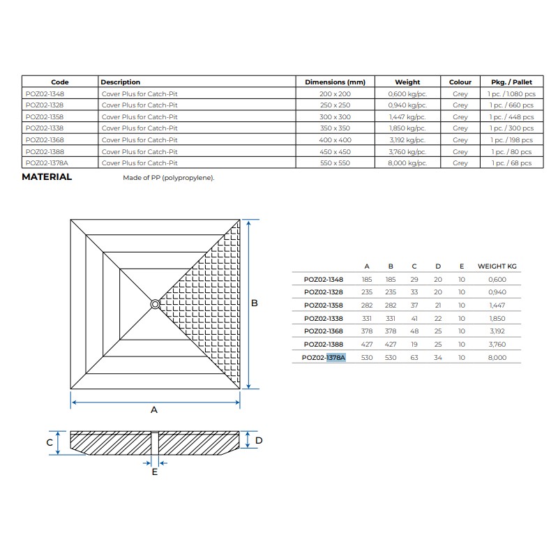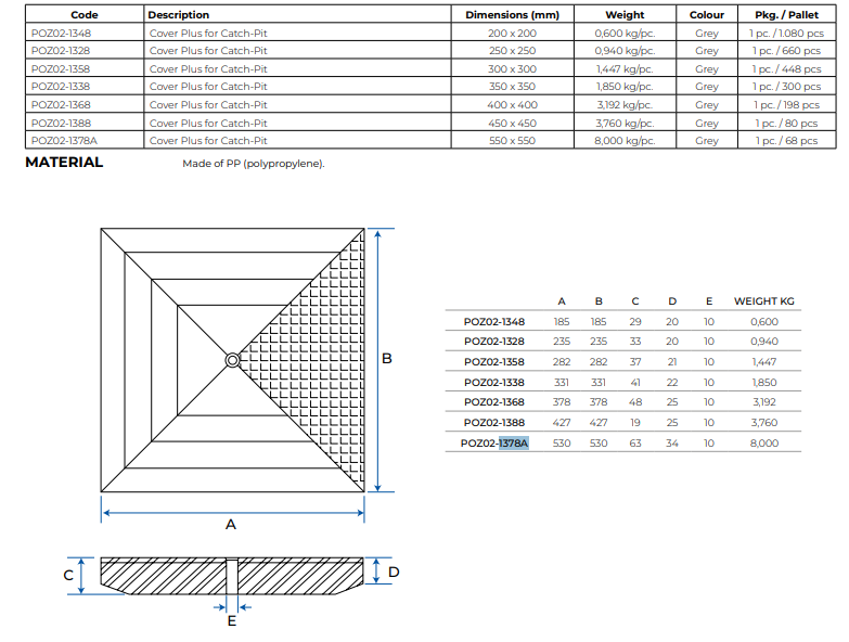 Tapadera para arqueta 550 x 550 mm de Dakota en polipropileno (PP) y de color gris. Con un material resistente y práctica, ideal para inspección de arquetas. Dakota, especialista en materiales plásticos y ofrece un amplia gama de accesorios y productos para la construcción.