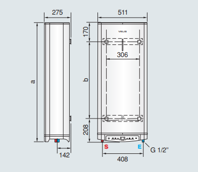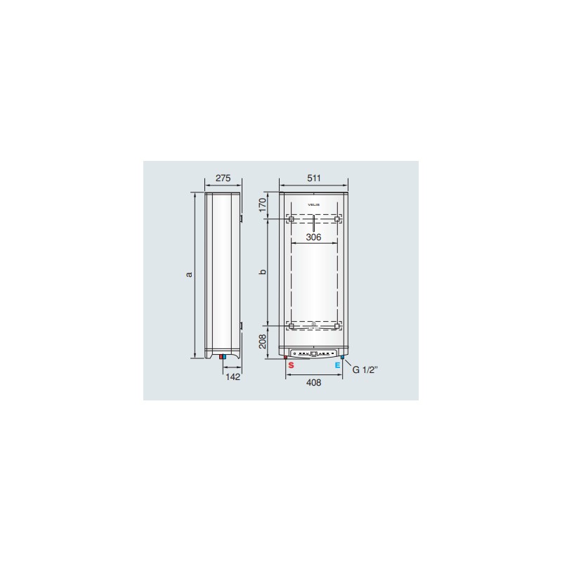 Termo Velis Pro - ARISTON 50: a: 781 mm, b: 403 mm