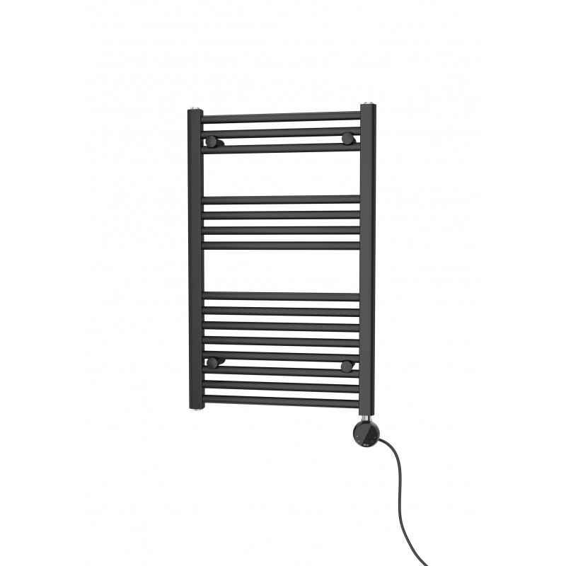 Toallero eléctrico de acero. Incluye termostato con 3 funciones: 4 niveles de temperatura ajustables, temporizador de potencia (2h) y temporizador de potencia con auto-off. Potencia de 300W. Dispone de protección frost (bajas temperaturas) y bajo consumo durante modo reposo. Incluye kit de montaje.